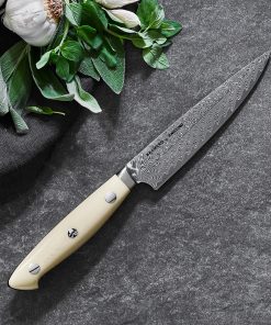 The ZWILLING Bob Kramer Cumulus Collection puts precision in the palm of your hand. The 5-inch utility knife is a workhorse knife in the kitchen that’s ideal for precision work in-hand or on the cutting board. This versatile knife is ideal for slicing fruit, mincing garlic, and cutting very thin cuts of meat or poultry.