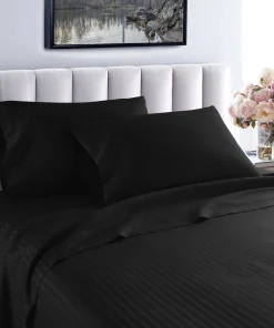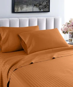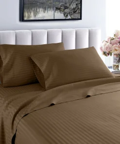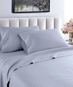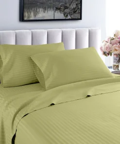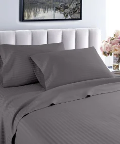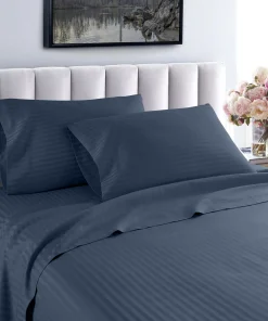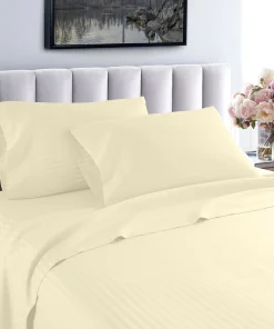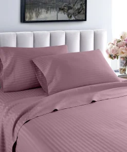Slip into a luxuriously soft bed each night with these high-quality sheets. Made of Egyptian cotton with a thread count of 600, these sheets feature unmatched quality and comfort. The sheets feature a cool, breathable design and subtle striped pattern for an upscale hotel look. Machine washable—wash separately in cold water on a gentle cycle for approximately 15 minutes. Do not wash with other items. Do not bleach. Tumble dry on low. Iron as needed.Features: Set includes 1 flat sheet, 1 fitted sheet, and 2 pillowcases (1 in Twin/Twin XL set) Crafted of Egyptian cotton Thread count is 600 Cool, breathable feel Tone-on-tone striped pattern Available in various color options Fully elasticized fitted sheet Machine washableTwin Dimensions: Flat Sheet: 66 inches wide x 96 inches long Fitted Sheet: 39 inches wide x 75 inches long Pillowcase: 20 inches wide x 30 inches longTwin XL Dimensions: Flat Sheet: 66 inches wide x 96 inches long Fitted Sheet: 39 inches wide x 80 inches long Pillowcase: 20 inches wide x 30 inches longFull Dimensions: Flat Sheet: 81 inches wide x 96 inches long Fitted Sheet: 54 inches wide x 75 inches long Pillowcases: 20 inches wide x 30 inches longQueen Dimensions: Flat Sheet: 92 inches wide x 102 inches long Fitted Sheet: 60 inches wide x 80 inches long Pillowcases: 20 inches wide x 30 inches longKing Dimensions: Flat Sheet: 102 inches wide x 108 inches long Fitted Sheet: 76 inches wide x 80 inches long Pillowcases: 20 inches wide x 36 inches longCalifornia King Dimensions: Flat Sheet: 102 inches wide x 108 inches long Fitted Sheet: 72 inches wide x 84 inches long Pillowcases: 20 inches wide x 40 inches long