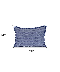 HomeRoots 14" X 20" Blue and White Striped Cotton Throw Pillow With Fringe