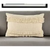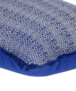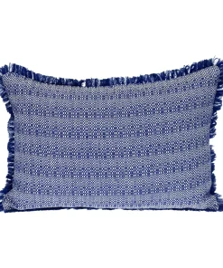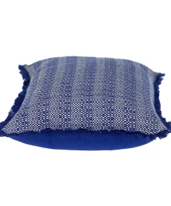 Add an air of fashion to your room and rejuvenate the space with this cute and fashionable 14-inch x 20-inch blue and white striped cotton throw pillow with fringe. The blue and white coloring of the extremely durable and long lasting cotton will add dimension and texture to your space. Fun and decorative fringe add some high end and hand-crafted textural designer touches. Super soft and built to hold its shape, this polyfill pillow is a great option. Great to use on its own or mix with other decorations for the perfect look. A great decorative accessory for your favorite chair, to accent your sofa, or to use as part of your bed ensemble. 14-inch H x 20-inch W x 7-inch D