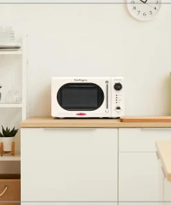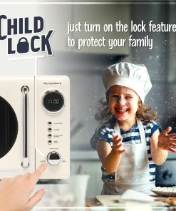 0.7 Cu Ft Compact Retro Microwave with Ivory Finish & Basic Cooking Functions