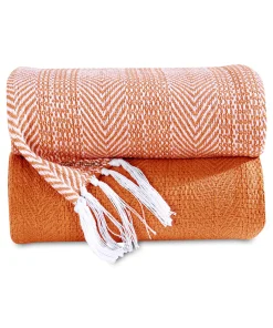 Wrap yourself in comfort with our 100% Cotton Hand Woven Throw Blankets set of 2. Made with ring spun pure cotton, our throws are soft, durable, and free from the rough texture of standard raw cotton. Measuring 50 x 60", this lightweight all-season throw is perfect for adding a pop of color and warmth to any couch or chair. The herringbone pattern and decorative fringe provide a classic look with a modern twist. Machine washable for easy care and maintenance.