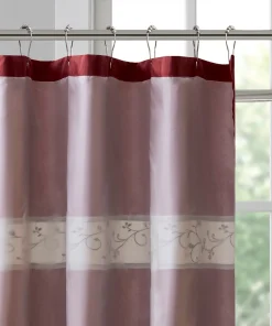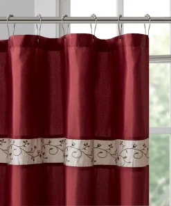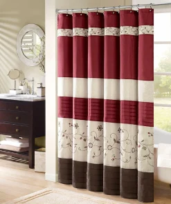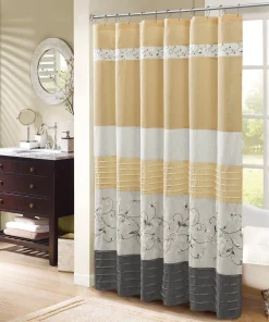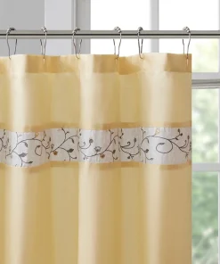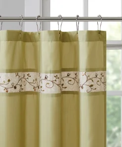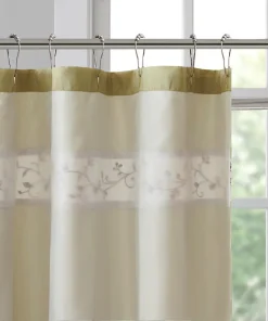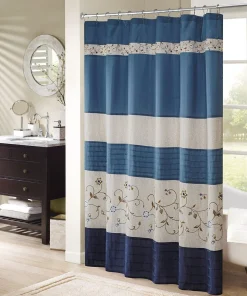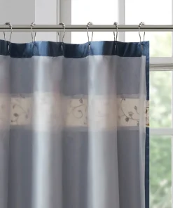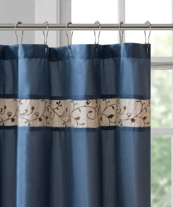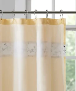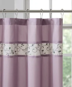 The 72×72 inch casual cottage style shower curtain features elegant floral embroidery and solid colour patchwork pattern, adding a touch of elegance to your bathroom space.100% polyester material is wear-resistant and not easy to fade, easy to take care of. The machine washable feature makes daily care easy and simple, and it always stays as clean as new. For better waterproofing, a waterproof liner is recommended (liner to be purchased separately). Â Â