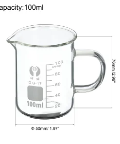 100ml Glass Beaker with Handle, 3.3 Borosilicate Graduated Lab Measuring Cups – Clear