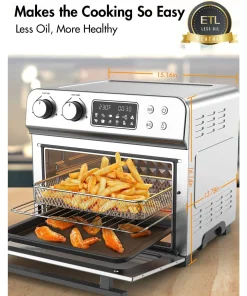 - 【 EASY TO CLEAN & OPERATE AIR FRYER OVEN】 Easy to clean. Enjoy easy cooking with the crisp and large LED screen, intuitive digital and convenient dial controls. With the precise temperature and time control, you customize programs to make your food just the way you like. Anyone can cook like a pro. ( Wide temperature range from 150℉-450℉, Time range from 1-60min )