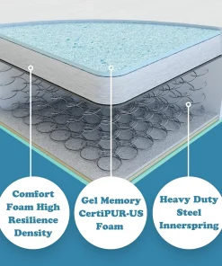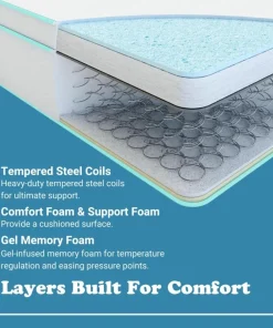 - Enhanced Comfort: Gel-infused memory foam for body temperature regulation and alleviating pressure points combined with layers of high-density quilting foam, comfort and support foam, and strong steel coil units that contour to your body for a peaceful sleep.