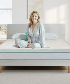 Experience the revolutionary comfort of this hybrid mattress, combining the pressure relief of memory foam with the reliable support of a traditional innerspring mattress. Wrapped in a quilted fabric cover, this mattress offers both comfort and resilience, while layers of plush comfort and support foam provide customized cushioning tailored to your needs. Beneath, tempered steel coils ensure lasting support and breathability for a refreshing sleep experience night after night. At the surface, gel-infused memory foam creates a plush top layer, regulating body temperature and conforming to your body to alleviate pressure points, promoting deep and restful sleep. With the convenience of hassle-free delivery and setup, our mattresses come compressed and rolled in a box – simply unpack, unroll, and revel in the luxurious comfort of your new mattress.Â