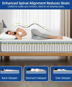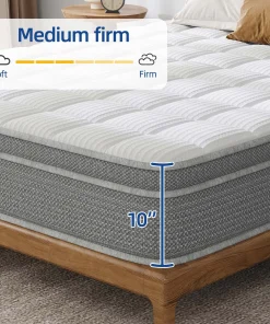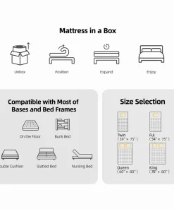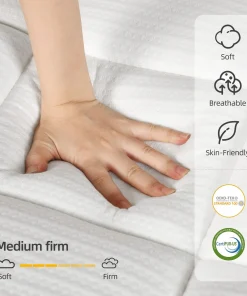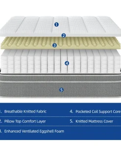 Introducing our Hybrid Mattress, the perfect blend of cooling comfort and motion isolation. Our mattress combines gel memory foam and egg crate foam, layered over pocketed coils for optimal cooling and targeted support. The individually encased coils provide motion isolation, reducing disruptions from partner movements. The mattress also features a sturdy edge support system for durability and a comfortable seating experience. Crafted with a breathable, skin-friendly knitted plush cover and a square-grid pillow top design, it offers cloud-like comfort. Certified by CertiPUR-US, our mattress ensures a healthier sleep experience.