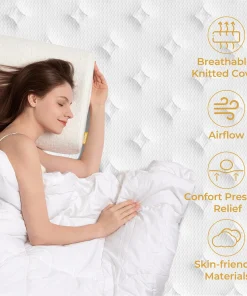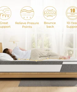 The Teoanns 10-inch mattress features 7 layers of premium foams, memory foam, and innerspring that provide lasting comfort and support, atop your mattress adapts to your unique body shape, and relieves painful pressure points. The cradling comfort helps you have a good sleep until tomorrow.