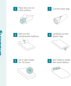 - Crystli mattress is efficiently compressed into a box that’s shipped right to your door, simply unbox, unroll and the mattress does the rest, expanding to its original shape within 72 hours.Â