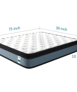 - Twin: 39 inches wide x 75 inches long x 10 inches thick
