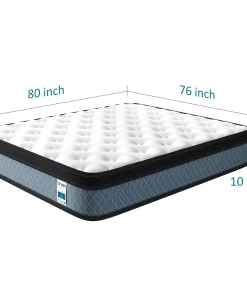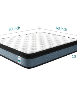 - Queen: 60 inches wide x 80 inches long x 10 inches thick