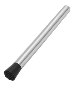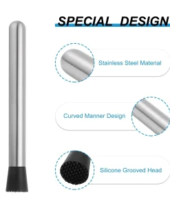 - With a silicone grooved head, a grooved surface provides strong crushing and impact force for a better mix of fruit and ice, and the flexibility of the silicone ensures the glass will not crack or scratch. Long handle with a curved manner design, comfortable to grip and offer a firm grip that less force can be applied.