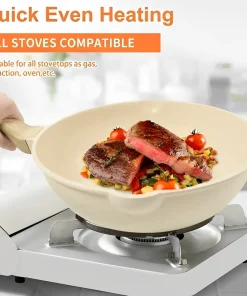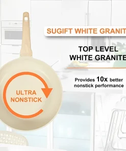 Discover a new realm of culinary possibilities with the SUGIFT 10-Piece Nonstick Cookware Set. Crafted with an eco-friendly White Granite surface, this cookware set offers unparalleled non-stick performance for healthier and more convenient cooking. From sizzling skillets to versatile saucepans, this comprehensive collection has you covered for any culinary adventure. Featuring an extended bottom design, the set is compatible with all stove types—including induction cooktops. Say goodbye to laborious cleaning; a simple wipe or rinse is all you need.Â