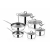 - Introducing a 10-piece stainless steel cookware set in an elegant silver finish with capacities ranging from 1.75 to 5.5 quarts.Â