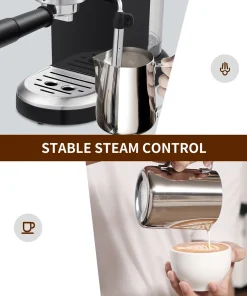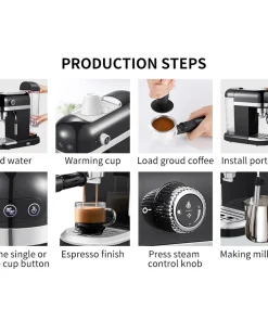 The automatic espresso is equipped with an adjustable steam device to control the built-in steam rod to steam or heat the milk.
