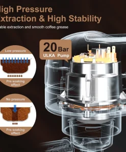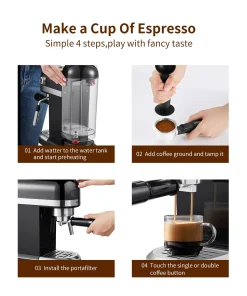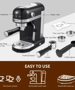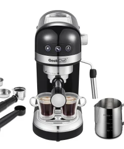 【Professional 20-Bar Pressure for Espresso】 – Geek Chef espresso machine is equipped with 20 bar professional pump and 1350W high-power motor to provide you with high-quality coffee extract to ensure the best extraction of espresso and bring more strong aroma.【2 in 1 Espresso Machine】 – A coffee machine with milk foam can be used as an espresso machine, Cappuccino Machine and latte machine.It is a great gift for family or friends.