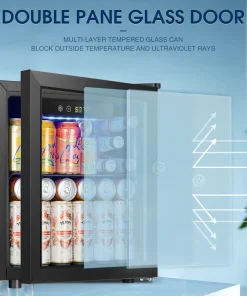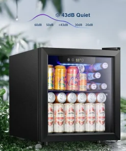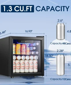 1.3cu.ft Beverage Refrigerator Cooler – 48 Can 12 Bottle Mini Fridge Glass Door, Electronic Touch Control