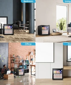 - VIBRATION-FREE and QUIET: Equipped with an advanced cooling system that keeps drinks at the right temperature without making noise. Equipped with removable black shelves, black glass doors and adjustable levelling feet, it is easy for customers to move the position of the drinks cabinet so that they can place their drinks or wines as they wish.