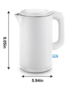 This white electric kettle is compact and looks fashionable on the counter. Not just for the kitchen, it can be used in a home office or even a dorm room for hot beverages anytime.