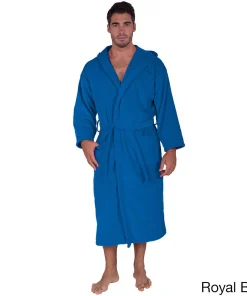 Impressively crafted from plush and premium Turkish cotton, this ultra-absorbent bathrobe features a cozy hood and a brushed terry velour weave throughout. Available in three accommodating sizes and four stylish colors, this warm robe is sure to keep its place as a bath-time favorite in your home for years to come.