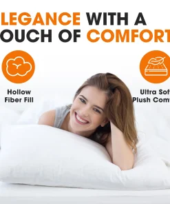 Experience the epitome of comfort and support with our Cheer Collection Hypoallergenic Pillows. After a long day, treat yourself to the luxury of these pillows, designed to provide the perfect blend of softness and firmness for a restful night’s sleep. The set includes two pillows filled with alternative down and fiber, ensuring a hypoallergenic experience that caters to your comfort needs. Crafted with care, these white pillows are not only visually appealing but also machine-washable for effortless maintenance. The cotton material and medium firmness make them ideal for supporting your head and neck, promoting a rejuvenating sleep experience.