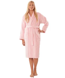 Finely crafted from plush and premium Turkish cotton, this ultra-absorbent bathrobe features a cozy shawl collar with a brushed terry velour weave. Available in three sizes and four stylish colors, this excellent robe is sure to become a bath-time favorite in your home for years to come.