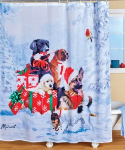 Christmas Dogs Bathroom Shower Curtain by MacNeil Studio