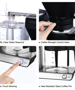 Imagine that every morning, a cup of fresh and delicious coffee wakes your vitality up and starts to work or study efficiently all day long. Of course, this important task will be assigned to this 12-Cup Drip Coffee Maker.