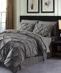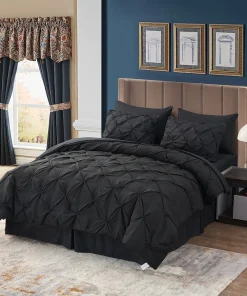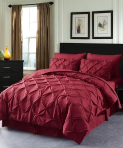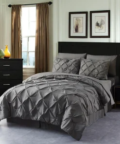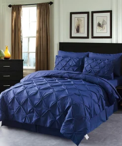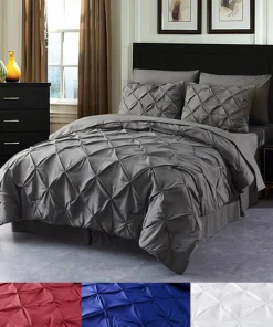 Experience the ultimate comfort and luxury with this 8-piece Pinch Pleated Bed-in-a-Bag Down Alternative Comforter Set. The comforter is made of super-soft microfiber with hypoallergenic down alternative fill and features a pinch pleated diamond pattern for an elegant, upscale look. This set includes everything you need to revamp the whole look and feel of your bed, from pillow cases and shams to sheets and a bedskirt. Choose from various solid colors to match your bedroom decor perfectly.