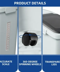 - The 11.4gal rice storage container is equipped with 4 detachable, 360-degree rotatable wheels
