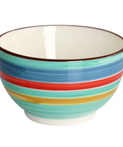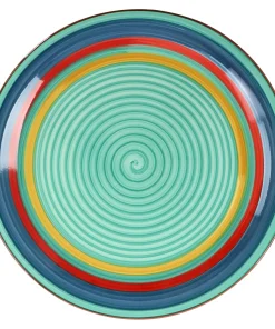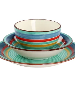 The Gibson Home 12 piece dinnerware set in turquoise will add a fun swirl of color into your every day dining. This set comes with service for four including dinner plates, dinner bowls, and cereal bowls. Finished with a glossy hand painted color swirl stripe, each dish will add a pop of color to your favorite meals, making your food stand out and your table a little brighter! Constructed with durable stoneware that is both dishwasher and microwave safe for fast clean up and easy reheat.