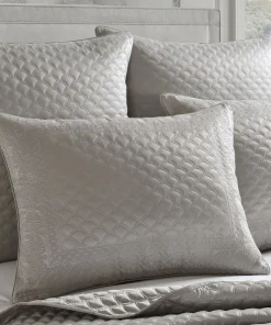 The Lyndon Pillow Sham complements the elegant Coverlet with the a machine quilted pattern and a mitered border containing a stunning foulard embroidery. The sham is finished with a hidden zipper closure making it reversible (each sham sold separately.