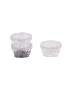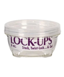 This 12-piece set of round 6-ounce storage containers with screw on lids consists of an interlocking design that makes stacking easy to lock into place. Lock-Ups are stackable and will stay closed if it tips. These compact containers are perfect for sorting and storing all sorts of small items.