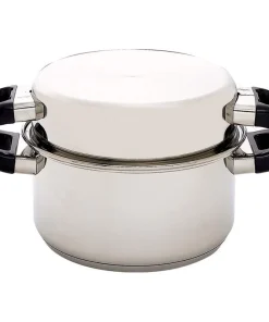 Bring your kitchen to the next level with this 17 piece set. It features heavy-gauge T304 stainless steel, which is ideal for durability and cooking performance. The extra-thick impact-bonded bottom assures fast and even heating with no hot spots, while the precision-formed rim and cover create a seal while you cook. The functionality of this set is amplified by the fact that a light flutter of the cover will tell you it is time to reduce the heat to low to allow the stored heat of the extra-thick bottom to finish cooking your food. These pots and pans feature high-quality, heavy-duty stainless steel capped rivets on the heat-resistant phenolic handles; gleaming mirror finish exteriors; easy-to-clean satin polish interiors; and self-storing covers. Each pan bottom clearly indicates the size of the pan so you can choose the perfect pan every time.