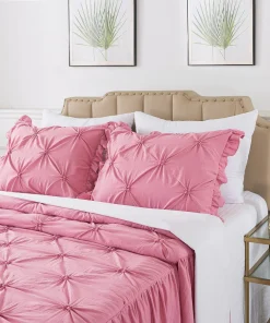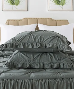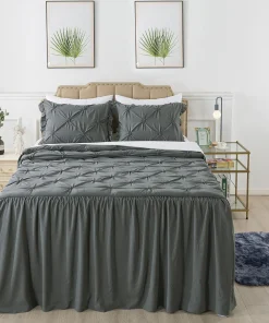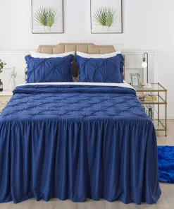 UNIQUE DESIGN: Compare with other ruffle skirt bedspread in the market,our pinch pleated design in the surface provide a more shabby chic & romantic look and excellent experience and comfort.The whole set is vacuum packed by a transparent PVC bag within a box.<br><br>