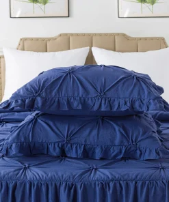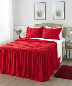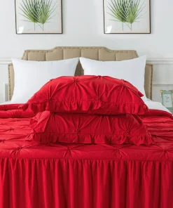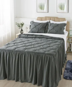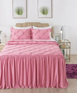 GOOD SLEEPING EXPERIENCE: This ruffle skirt bedspread is fluffy incredibly and give you a cozy feel and the most relaxing sleep at night. It lets you sleep comfortably at night without the worry of runny eyes or stuffy noses. Unlike goose down comforter, this manmade fiber is processed and sanitized thoroughly for the elimination of impurities like dirt, dust, and oil.<br><br>