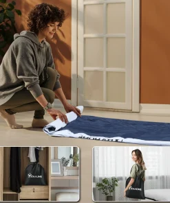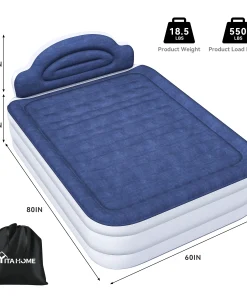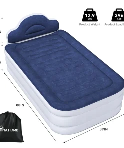 - Ultra Portable: Designed for convenience, inflatable air mattress includes a carry bag for quick and easy transportation and storage. Its compact design allows it to fit effortlessly into tight spaces such as closets and cabinets. Perfect for use at home, as a guest bed, during camping trips, travel, and sleepovers, thanks to its versatile and portable design