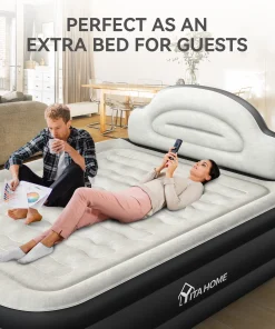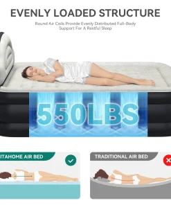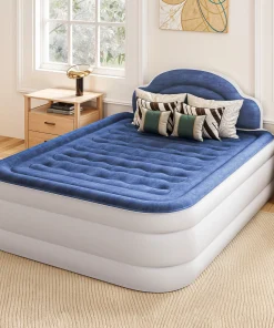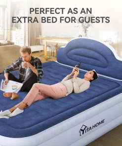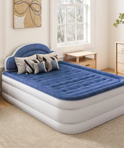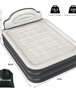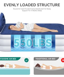 - Upgraded Integrated Headboard: Experience enhanced comfort with our air mattress with headboard featuring an integrated headboard. This unique design provides optimal support for your head, neck, back, and waist when sitting up. It also serves to prevent pillows from falling and safeguards against phones dropping into the gap between the headrest and the air bed