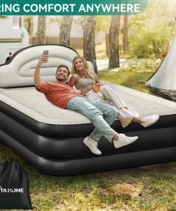 Our premium, waterproof blow-up mattress serves various purposes, functioning as a comfortable floor mattress at home, a portable bed for travel, and even a camping mattress for outdoor excursions