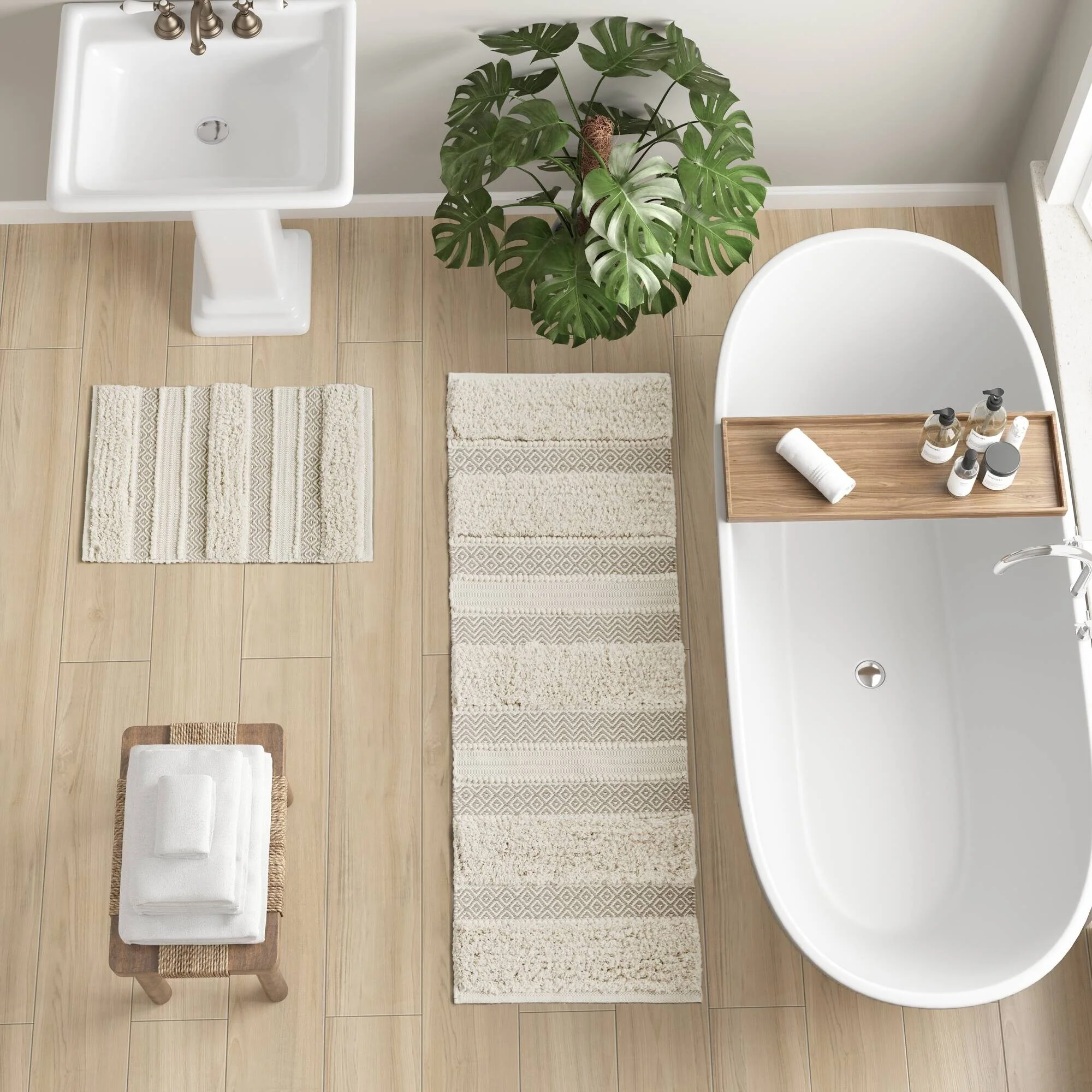 Geometry Bathroom Rug Mat, Extra Soft Absorbent Bath Rug, Non-Slip Comfortable Solid Color Bath Mat