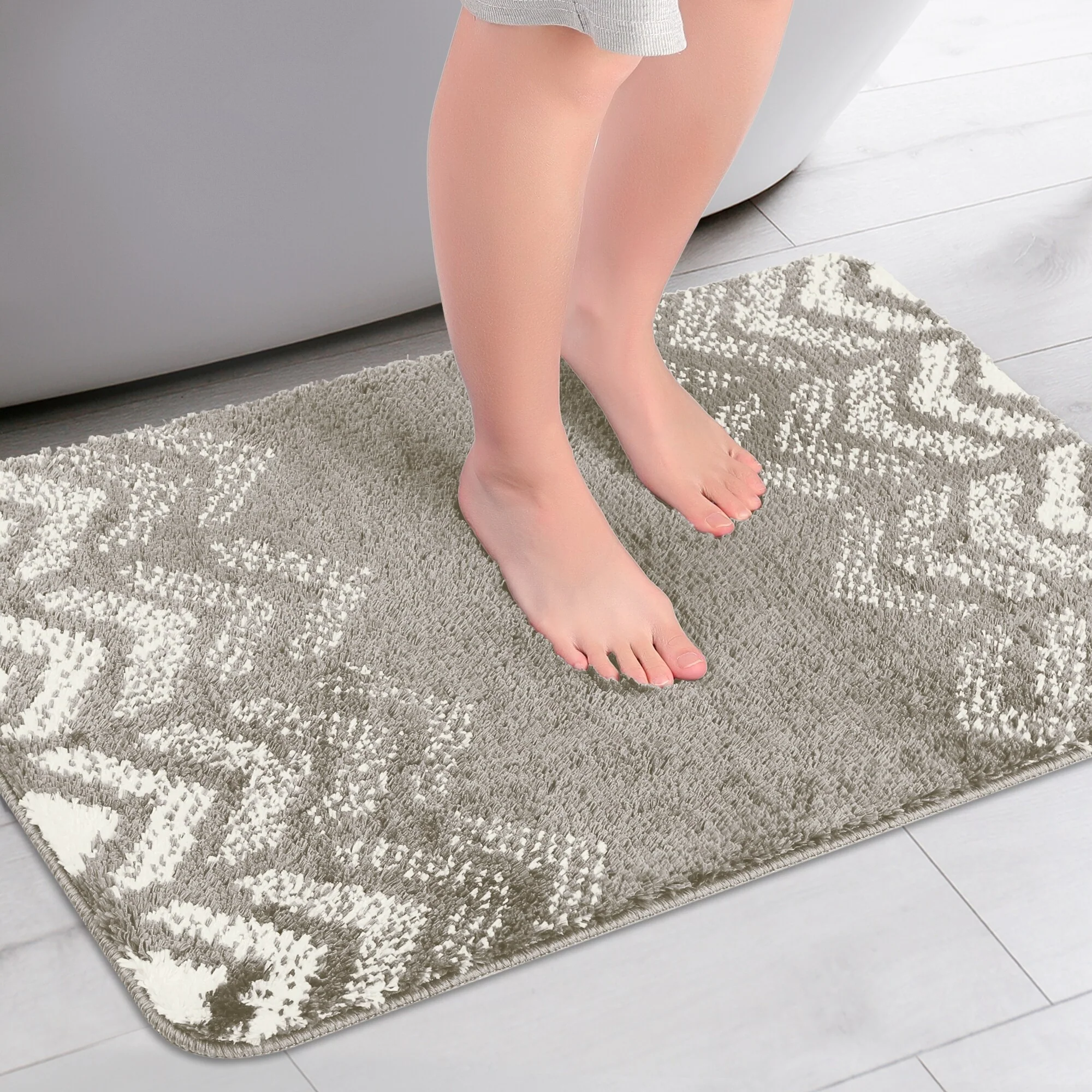 Absorbent Bath Mat Rug, Geometric Patterns Bathroom Mat, Non-Slip Carpet for Kitchen, Shower, Sink