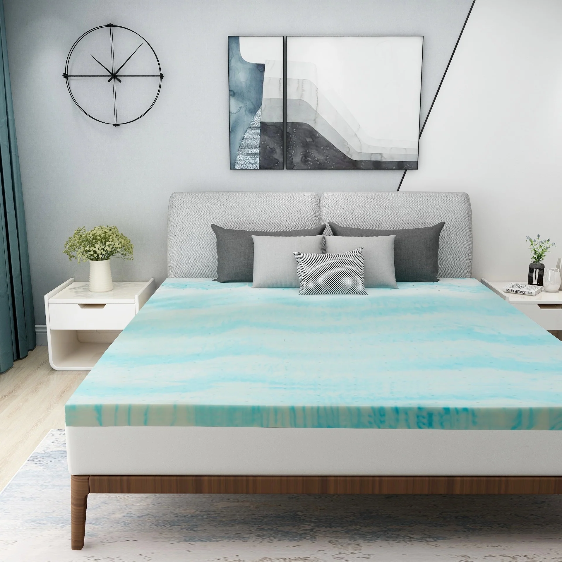 2 Inch Gel Infused Memory Foam Mattress Topper – Corrugated blue