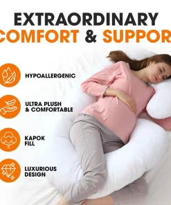 Cheer Collection J-Shape Kapok Pregnancy Body Pillow with Washable Cover