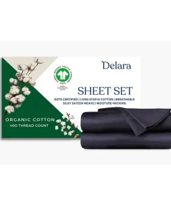 Delara 100% Organic Cotton Percale Pillowcase Pack of 2, GOTS Certified, 400 Thread Count