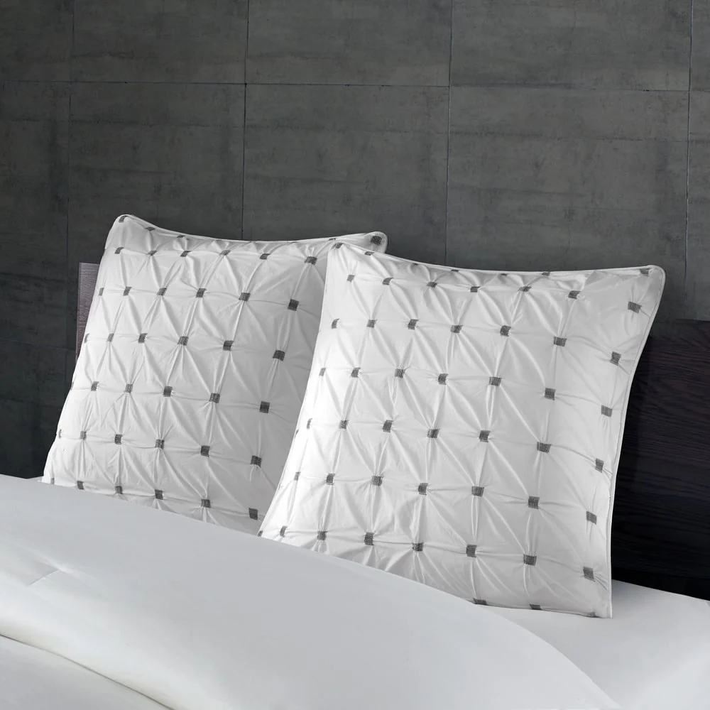 INK+IVY Jane White Embroidered Tufted Cotton Percale 26 x 26-inch Euro Sham Hidden Zipper Closure