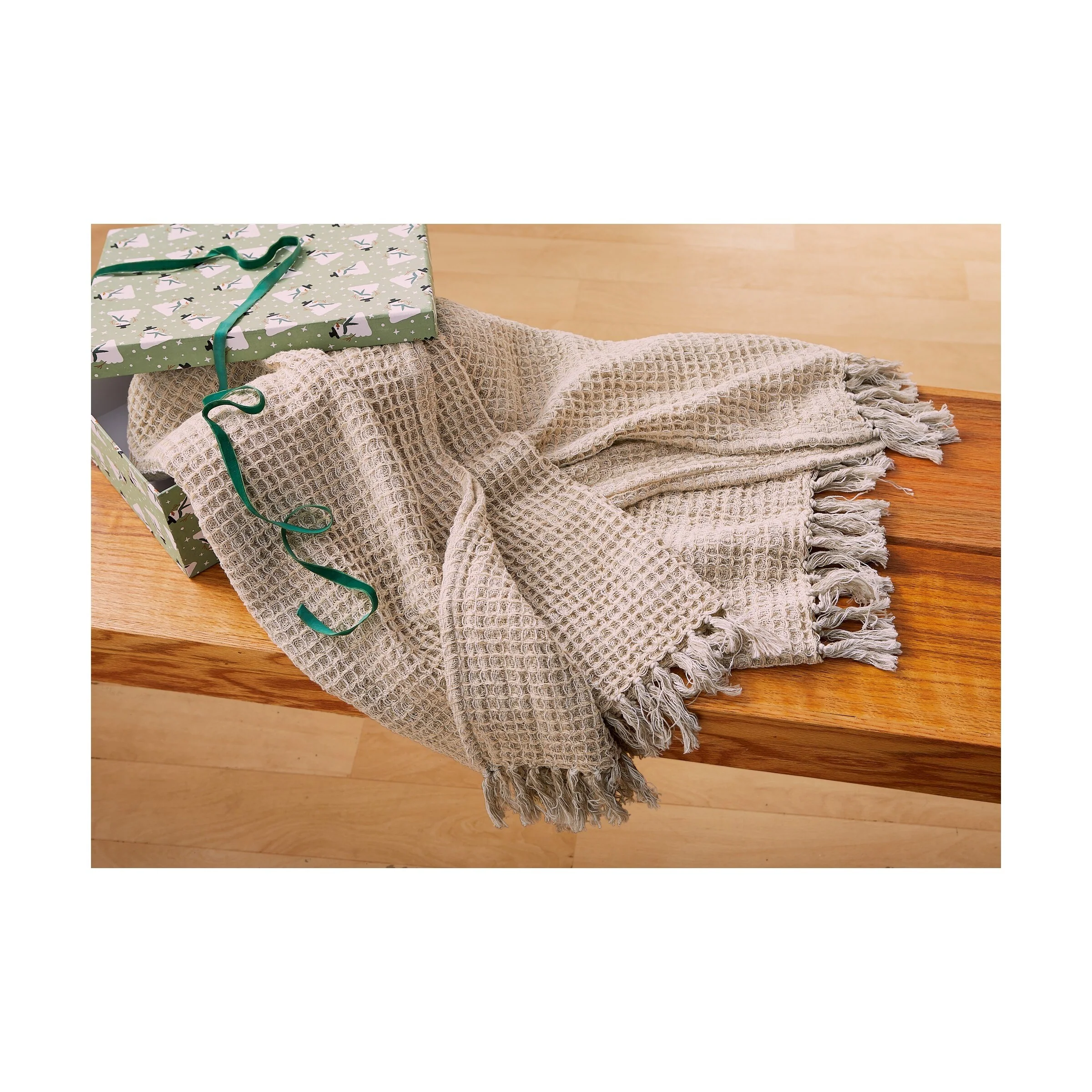 Chambray Cotton Decorative Throw for Sofa or Bed Beige Beige with Fringe 50L x 60W in.