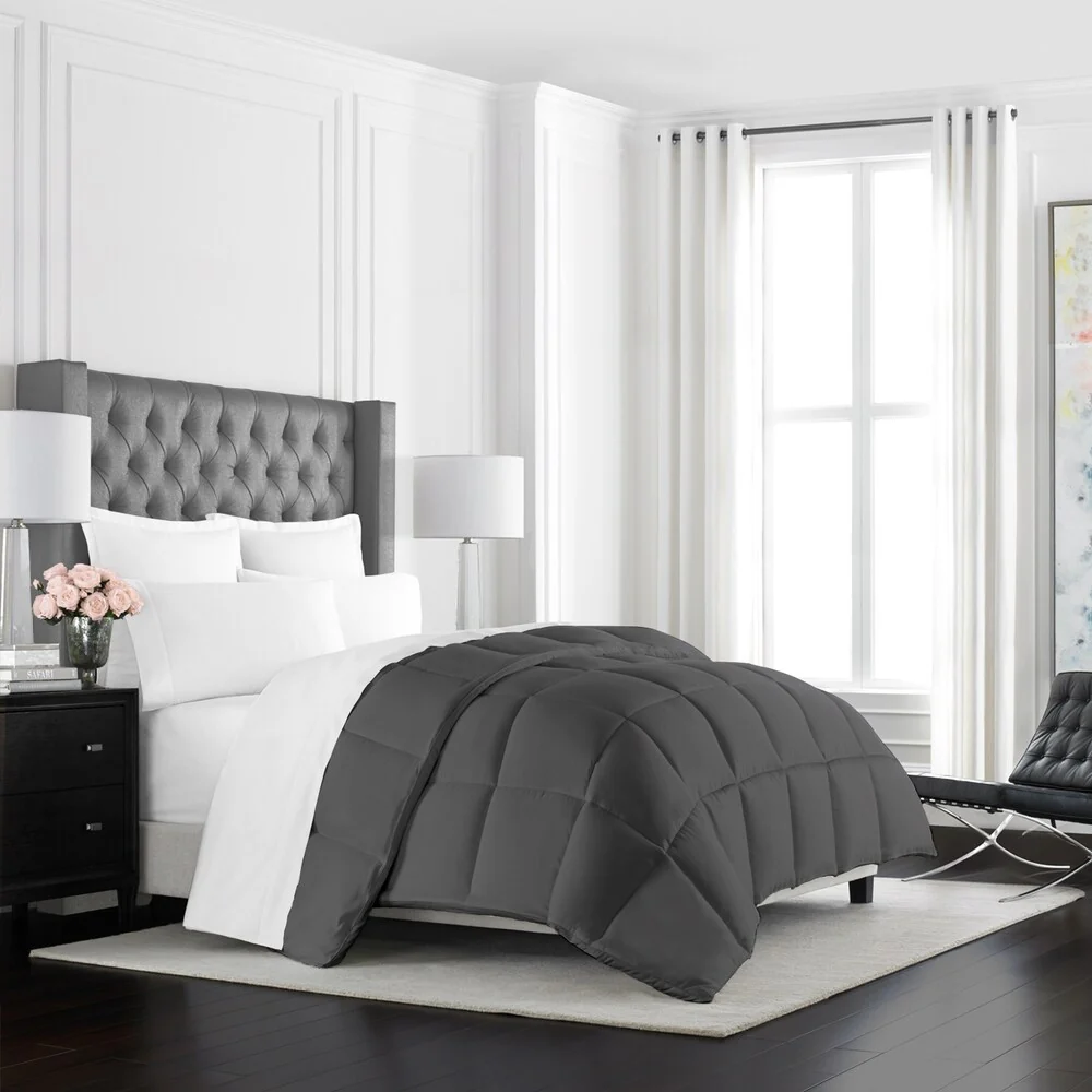 Black Queen Box Stitch Microfiber Down Alternative Comforter