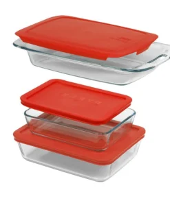 Daily Boutik 6-Piece Glass Bakeware Food Storage Set with Red Plastic Lids – 10" x 16" x 4"