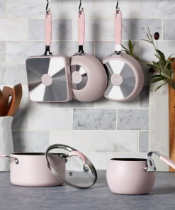 Denmark 5PC Aluminum Non-Stick Complete Mini Cookware Set with Silicone Handles – Cool Gray